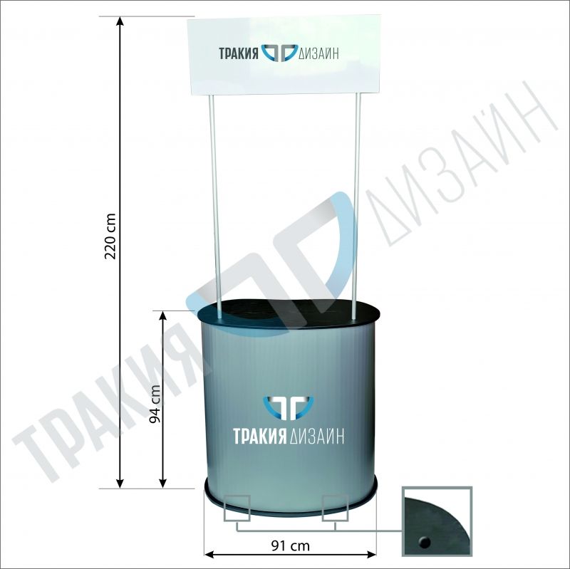 Промо катедрата е лека, изключително здрава и много лесна за сглобяване и пренасяне. Плотът и основата се закрепват към PVC панела с „ТВЪРДО ВЕЛКРО“. Простата конструкция гарантира лесно и безпроблемно сглобяване от всеки. Един чудесен продукт за вашата промоция. Предлагаме я в удобна чанта за пренасяне.