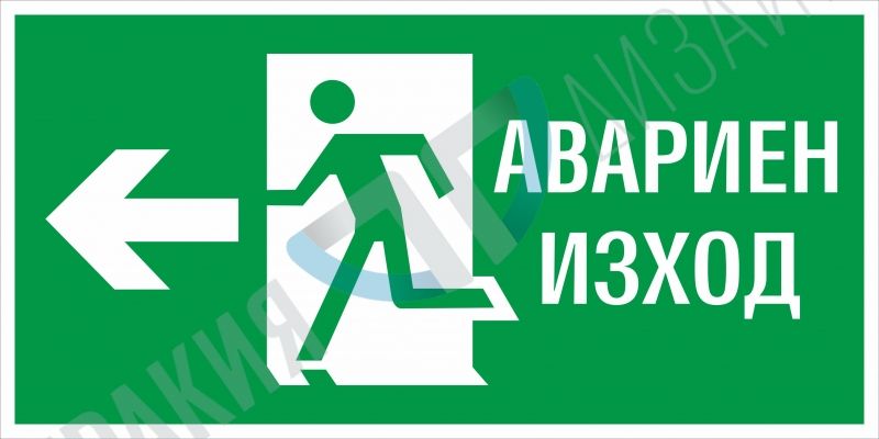 Знак и табела "Авариен изход наляво - вариант 1 BG"