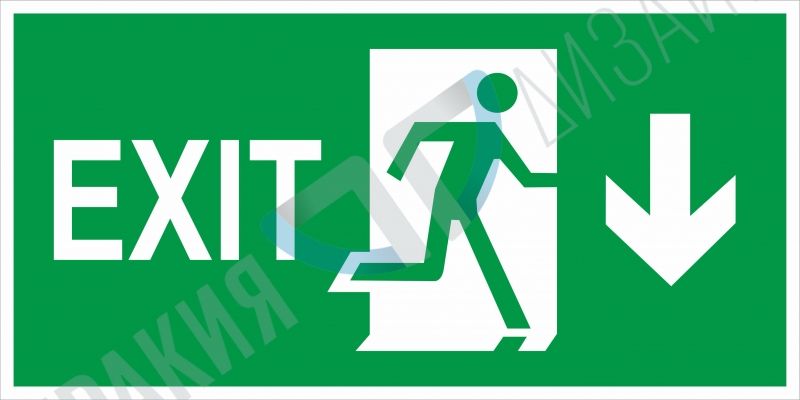 Знак и табела "Авариен изход надолу - вариант 1 EN"