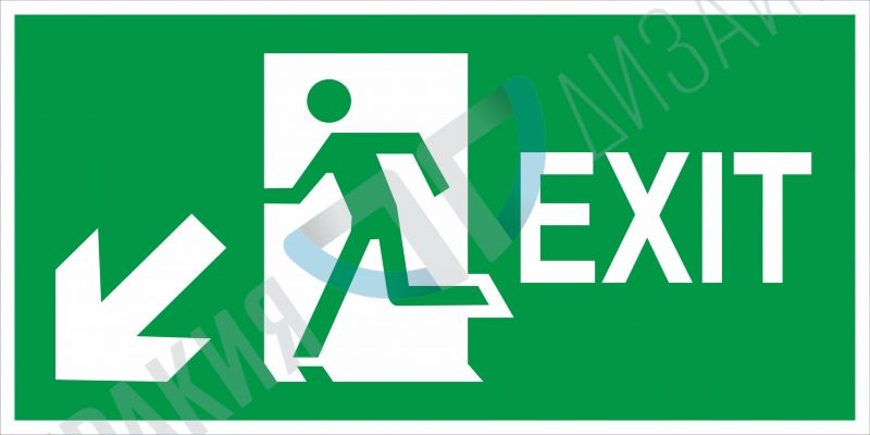 Знак и табела "Авариен изход наляво и надолу - вариант 1 EN"
