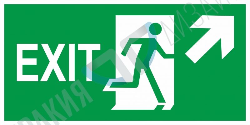 Знак и табела "Авариен изход надясно и нагоре - вариант 1 EN"