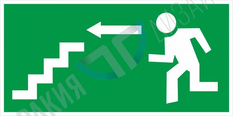 Знак и табела "Авариен изход наляво и надолу със стълби" Размер 30 х 15 см. Предлагаме стикери и табели.