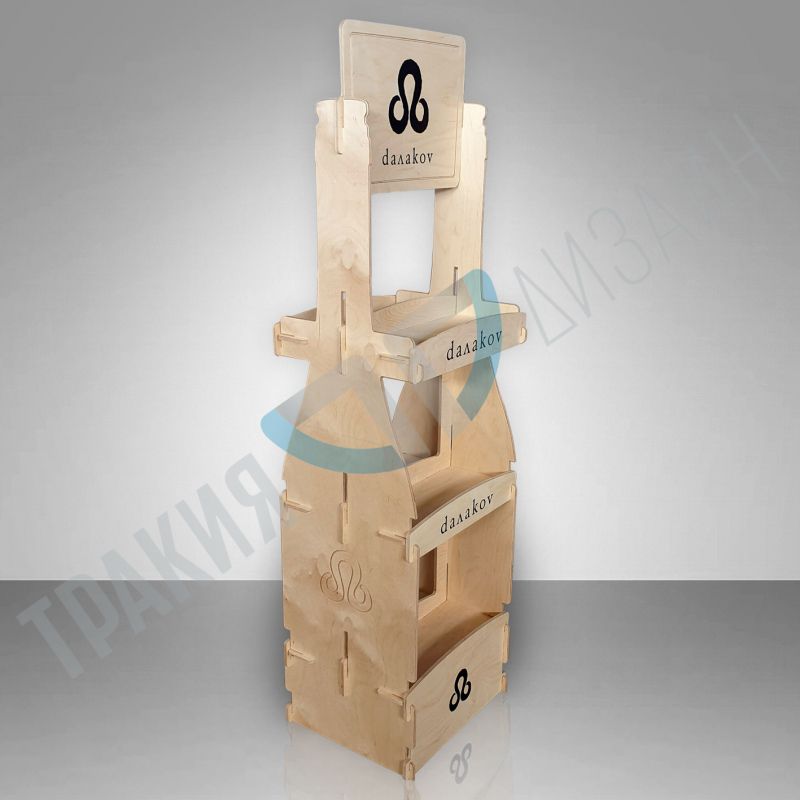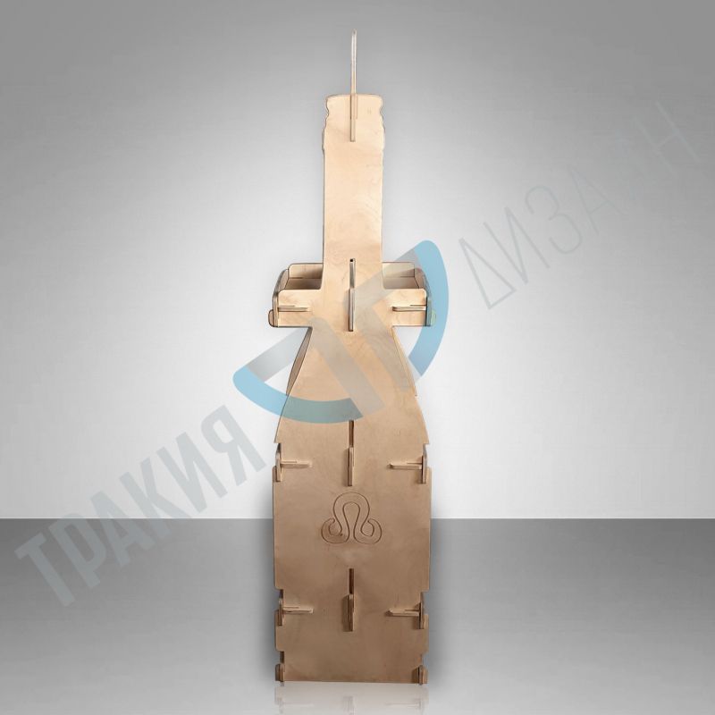 Стелаж за вино с габаритни раазмери 40 х 46 х 160 см. Стелажът е изключително устойчив. Събира 60 бутилки вино. В цената е включен печат на горно и долно чело.