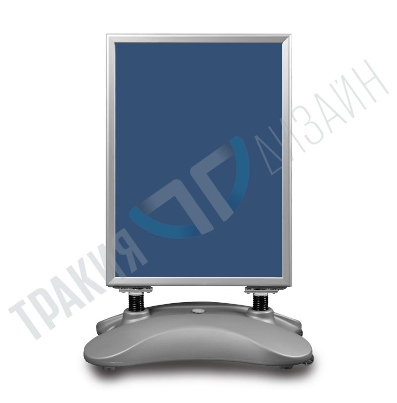 Рамката е монтирана на пружини, благодарение на които табелата се регулира спрямо вятъра. Основата е резервоар за вода. След като се напълни, това прави системата много тежка. Може да се управлява обаче с дръжка и колела, монтирани в основата. Снап рамка позволява вмъкване/размяна на плакат в рамките на няколко секунди. Дебелата корица на плаката е оборудвана с UV-филтър, който предпазва разпечатката от слънчева светлина и избледняващи цветове. Снап рамката на табелата е изработена от 32 мм анодизиран алуминиев профил.